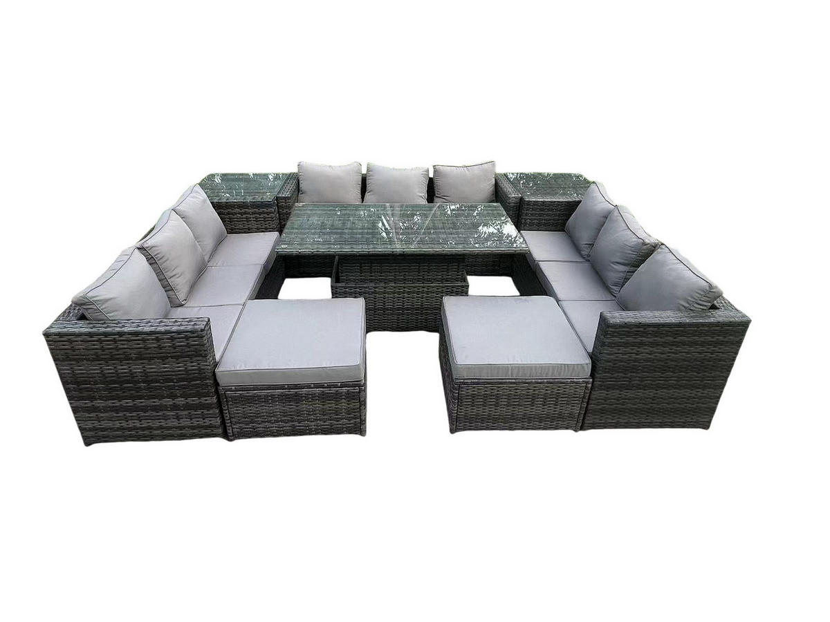 GARTENSET Polyrattan 11-Sitzer - Dunkelgrau/Grau, Glas/Kunststoff - FimousFimous