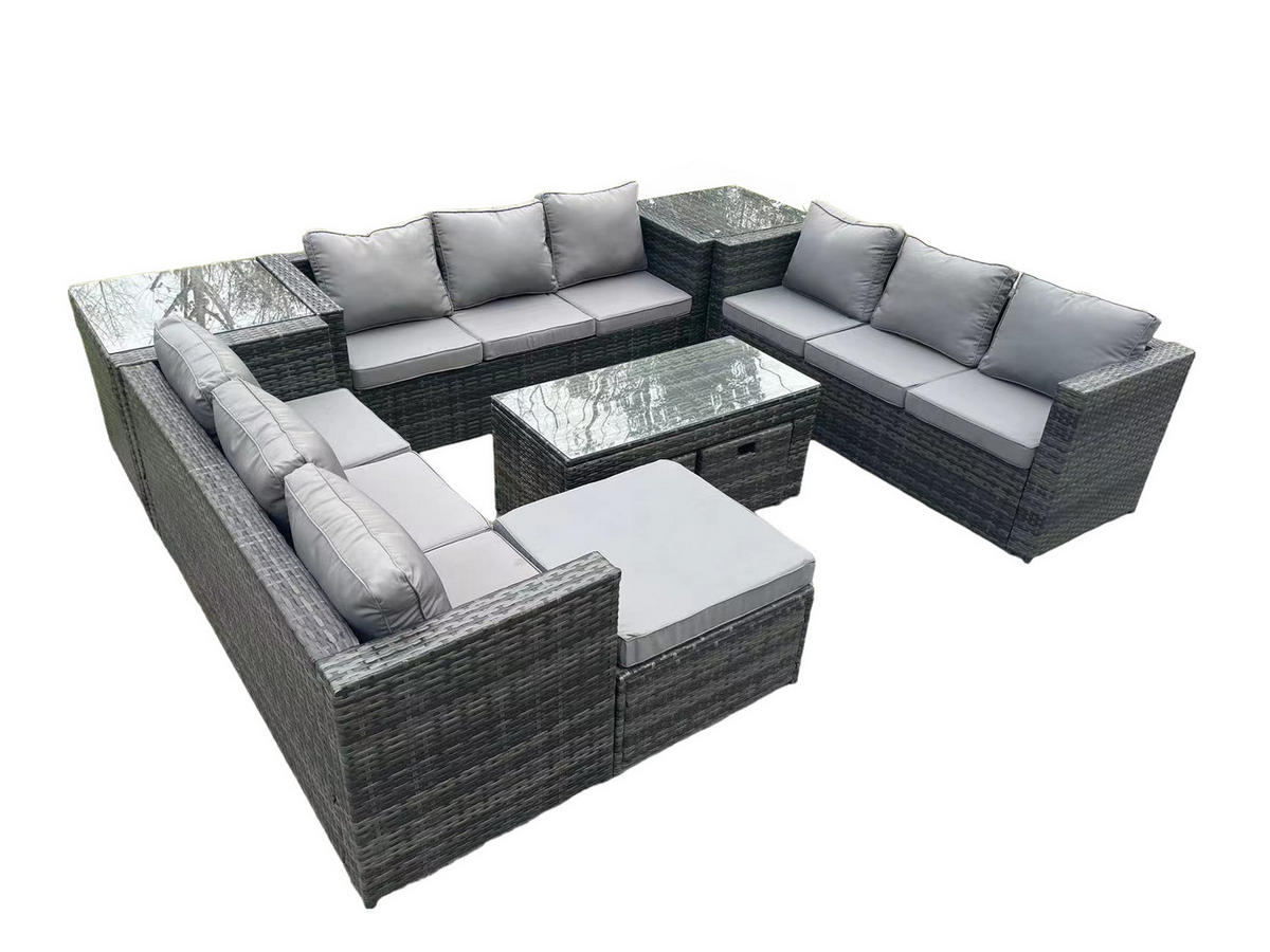 • Materialien: Polyrattan,Stoff,verzinkter Stahl,Schaum,Glas