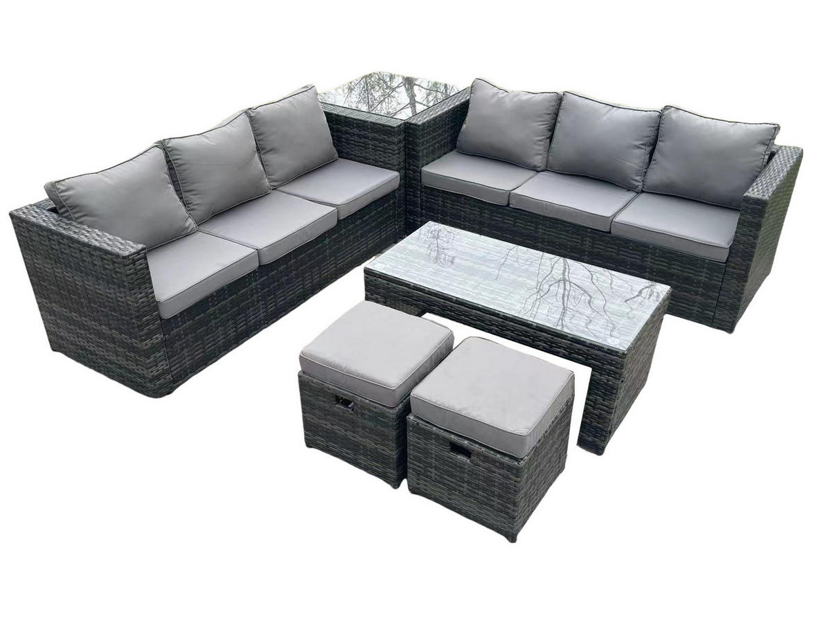 • Materialien: Polyrattan,Stoff,verzinkter Stahl,Schaum,Glas