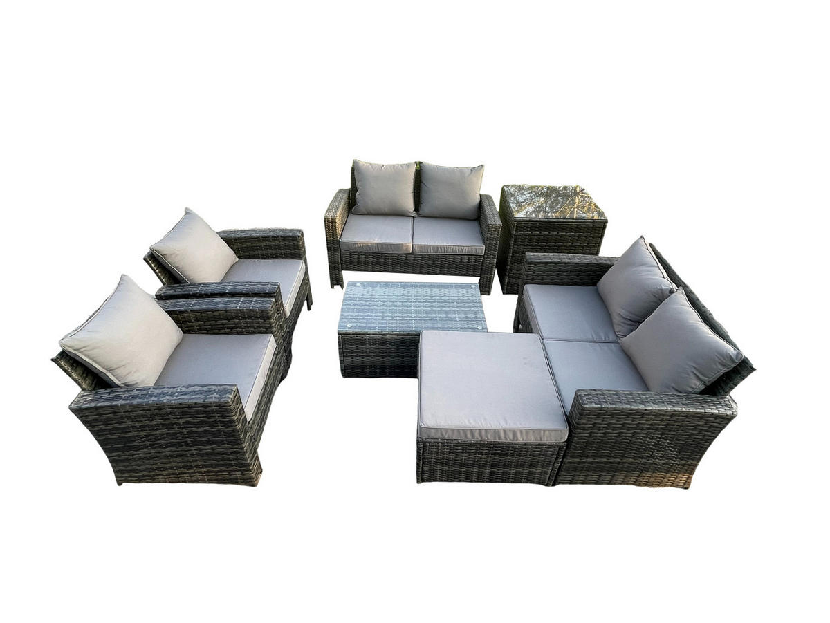 • Materialien: Polyrattan,Stoff,verzinkter Stahl,Schaum,Glas