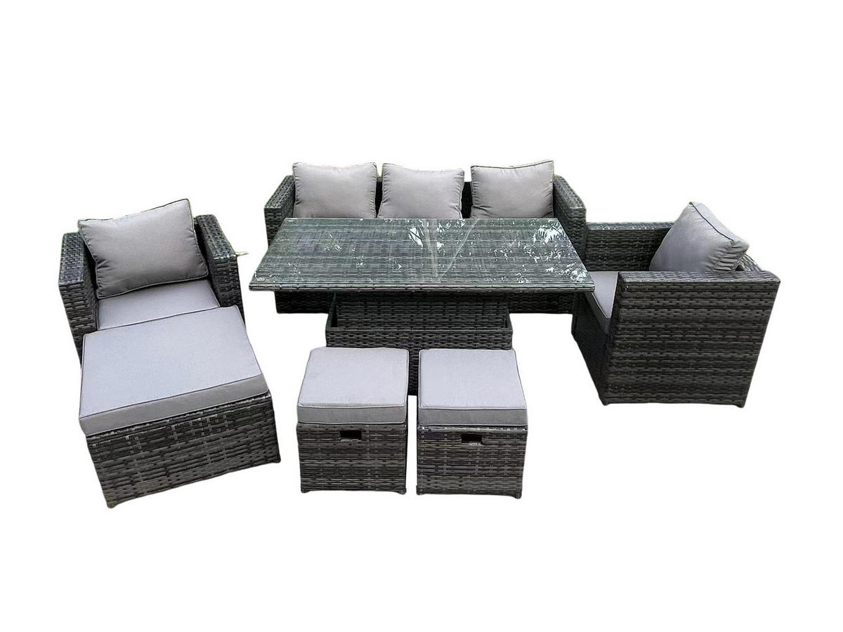 Fimous GARTENSOFA Hohe Rückenlehne Polyrattan 8-Sitzer