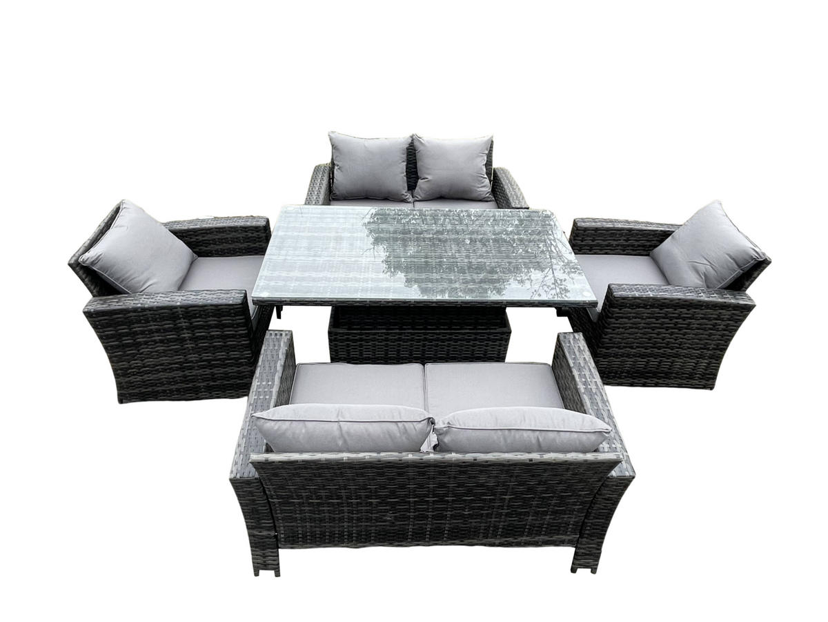 Fimous GARTENSOFA mit hoher Rückenlehne Polyrattan Dunkelgrau 6-Sitzer