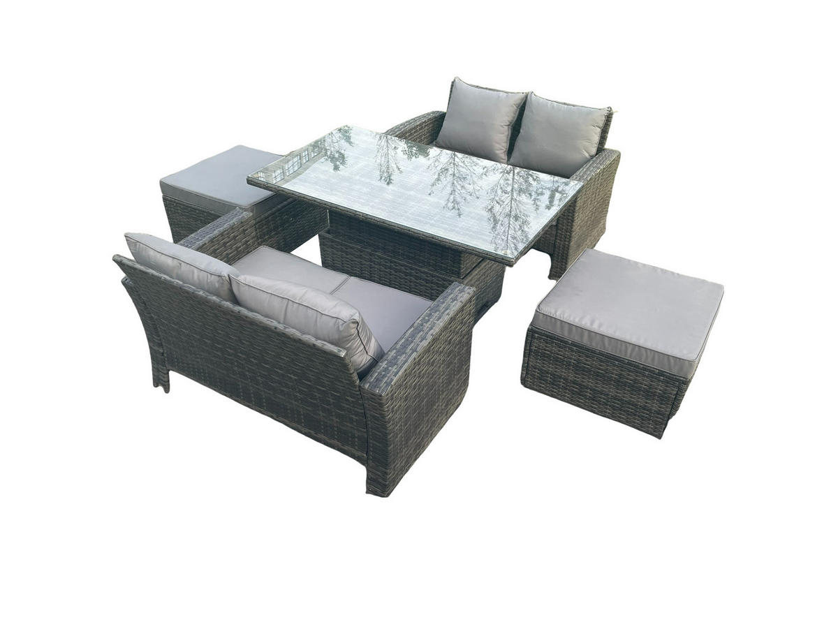 Fimous GARTENSOFA mit hoher Rückenlehne Polyrattan Dunkelgrau 6-Sitzer