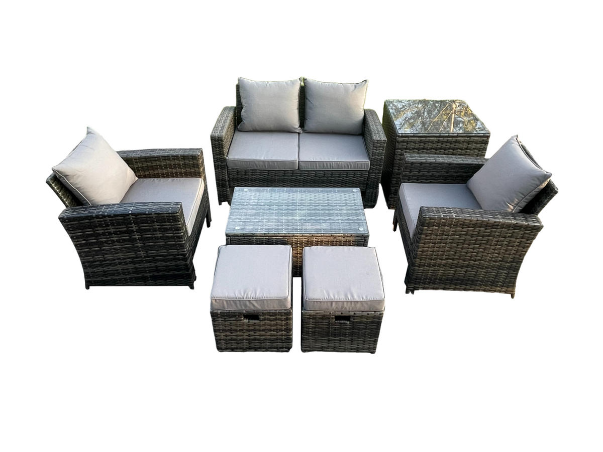 Fimous GARTENSOFA mit hoher Rückenlehne Polyrattan Dunkelgrau 9-Sitzer