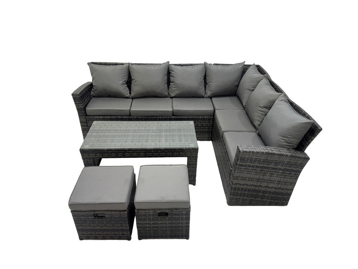 Fimous GARTENSOFA SET Hohe Rückenlehne Polyrattan Dunkelgrauer Mix 8-Sitzer