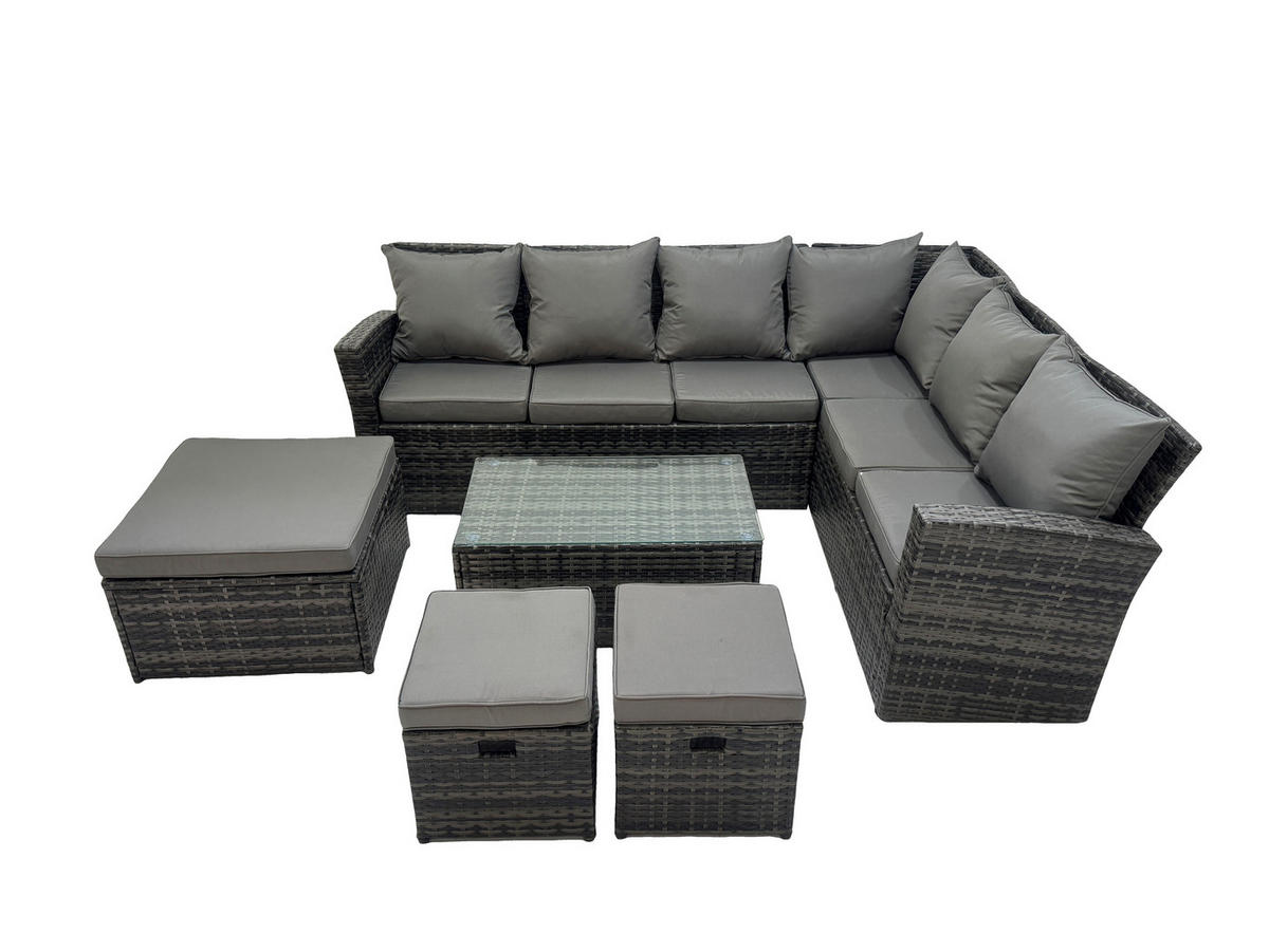 Fimous GARTENSOFA SET Hohe Rückenlehne Polyrattan Dunkelgrauer Mix 9-Sitzer
