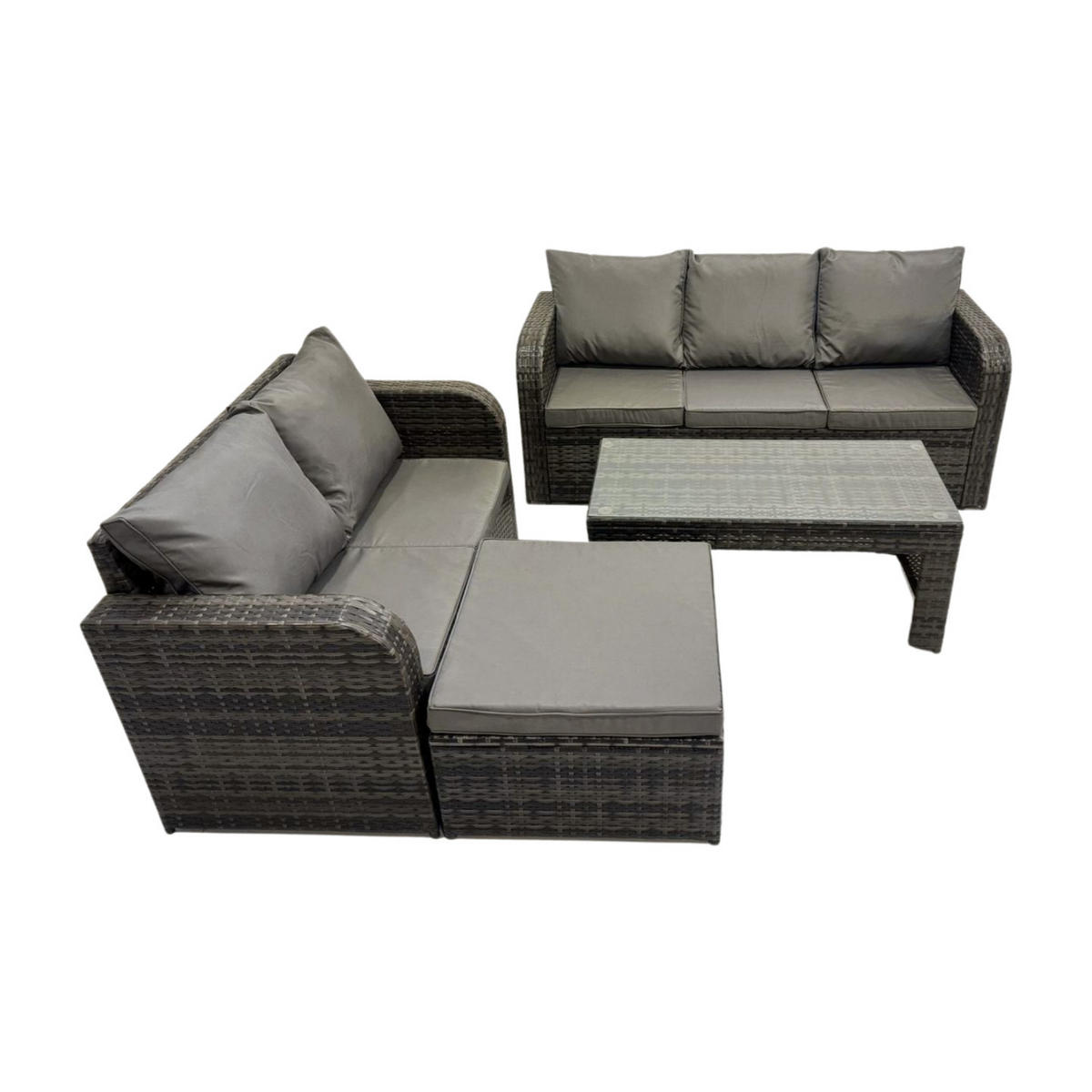 - Materialzusammensetzung: Galvanisierter Stahl, Schaum, PE Rattan, Glas, Stoff