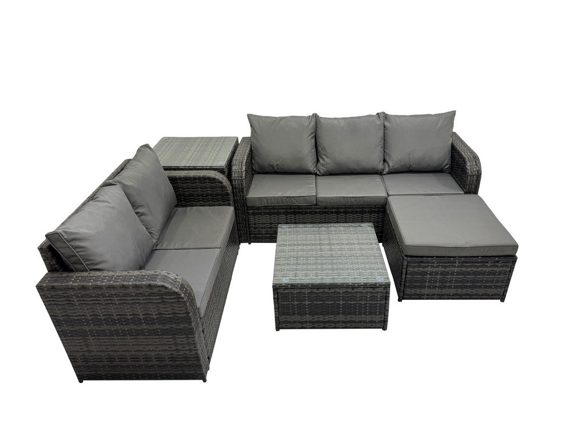 Fimous GARTENSOFA SET mit Couchtisch Polyrattan Dunkelgrau 5-teilige