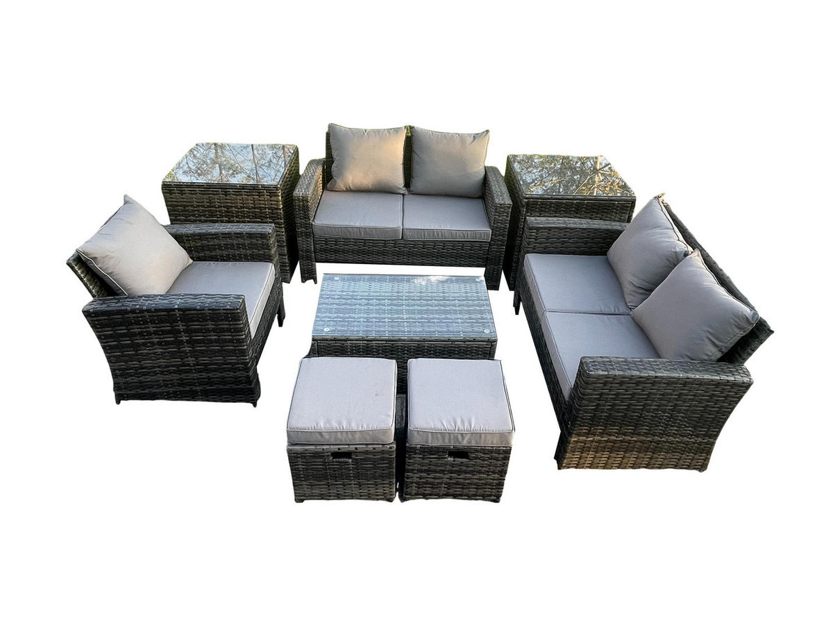 Fimous GARTENSOFA SET mit Couchtisch Polyrattan Dunkelgrau 7-Sitzer
