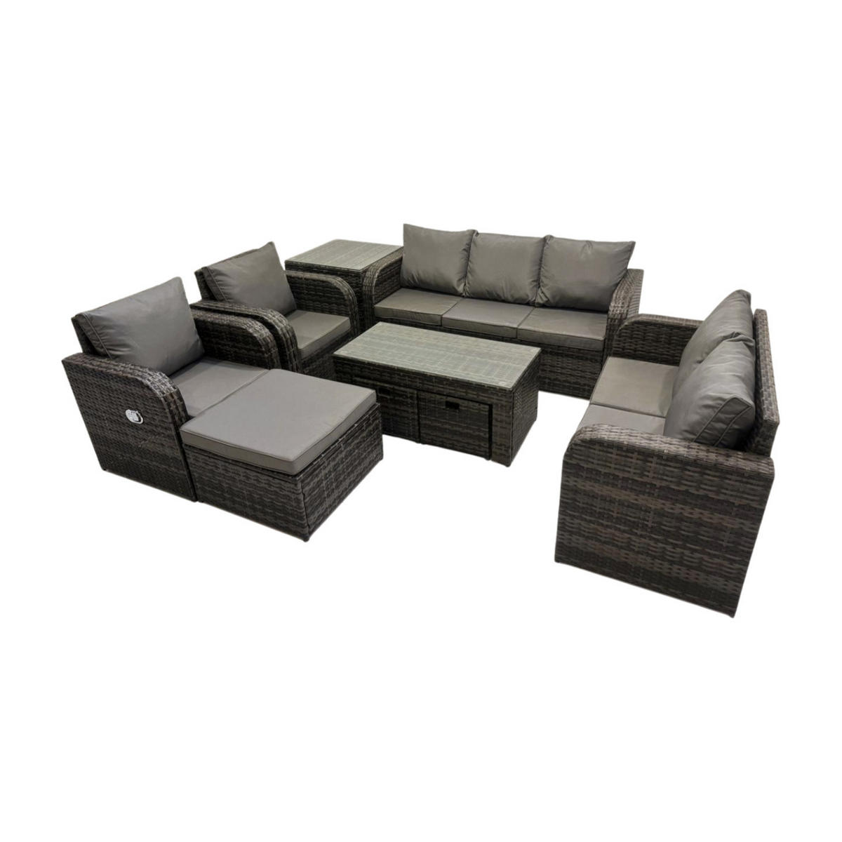 Fimous GARTENSOFA SET mit rechteckigem COUCHTISCH Polyrattan 10-Sitzer Dunkelgrau