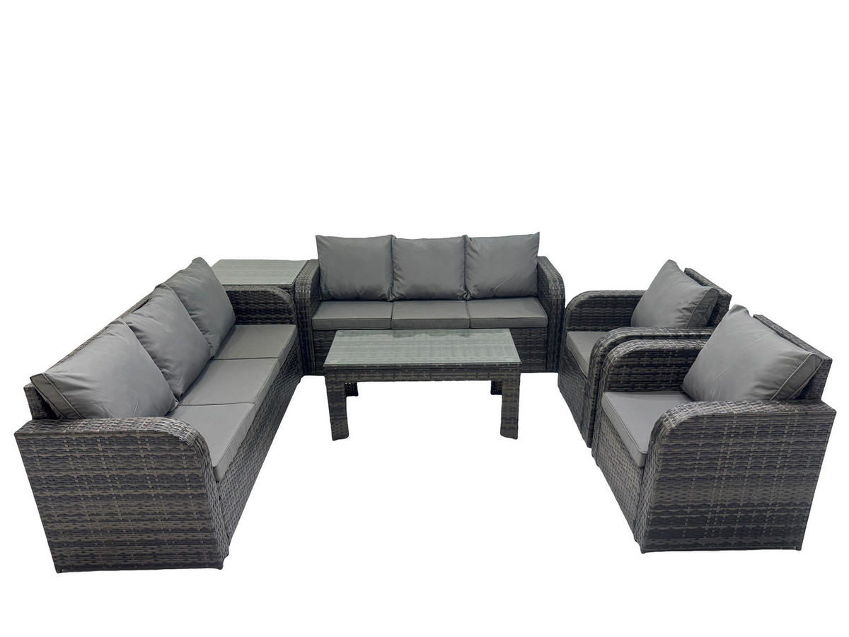 Fimous GARTENSOFA SET mit rechteckigem COUCHTISCH Polyrattan 8-Sitzer Dunkelgrau