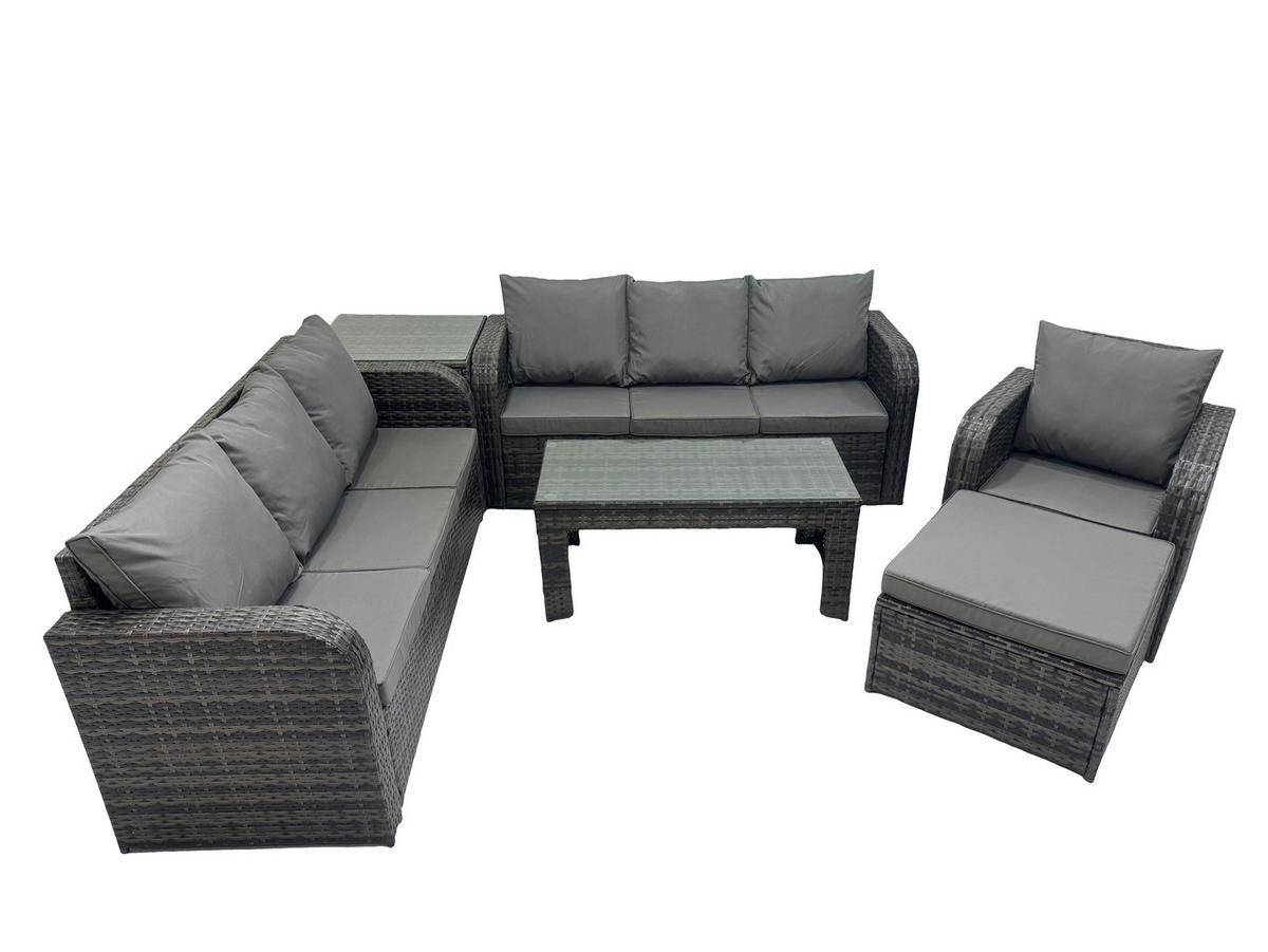 Fimous GARTENSOFA SET mit rechteckigem COUCHTISCH Polyrattan 8-Sitzer Dunkelgrau