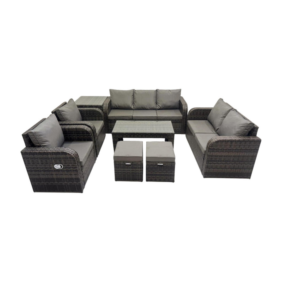 Fimous GARTENSOFA SET mit rechteckigem COUCHTISCH Polyrattan 9-Sitzer Dunkelgrau