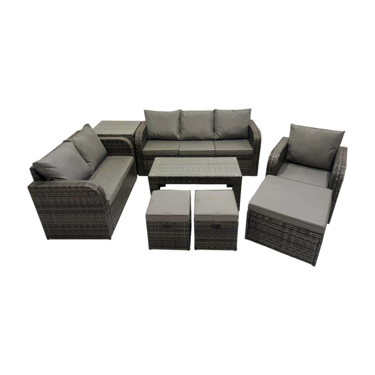 Fimous GARTENSOFA SET mit rechteckigem COUCHTISCH Polyrattan 9-Sitzer Dunkelgrau