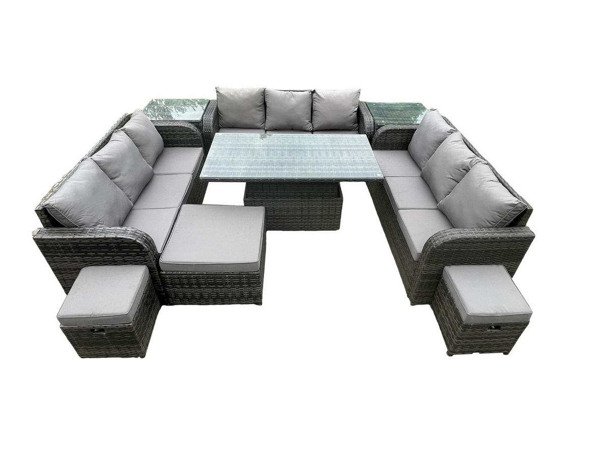 GARTENSOFA SET Polyrattan 12-Sitzer - Dunkelgrau/Grau, Glas/Kunststoff - FimousFimous