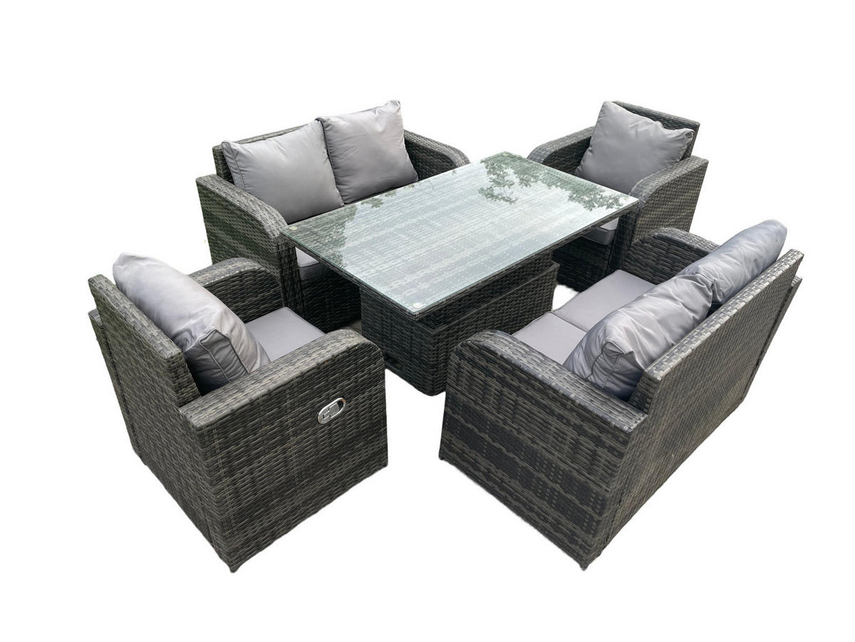 • Materialien: Polyrattan,Stoff,verzinkter Stahl,Schaum,Glas