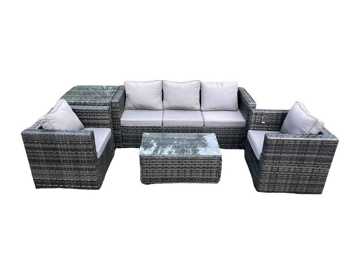 Fimous GARTENSOFA SET Polyrattan Dunkelgrau 5-Sitzer