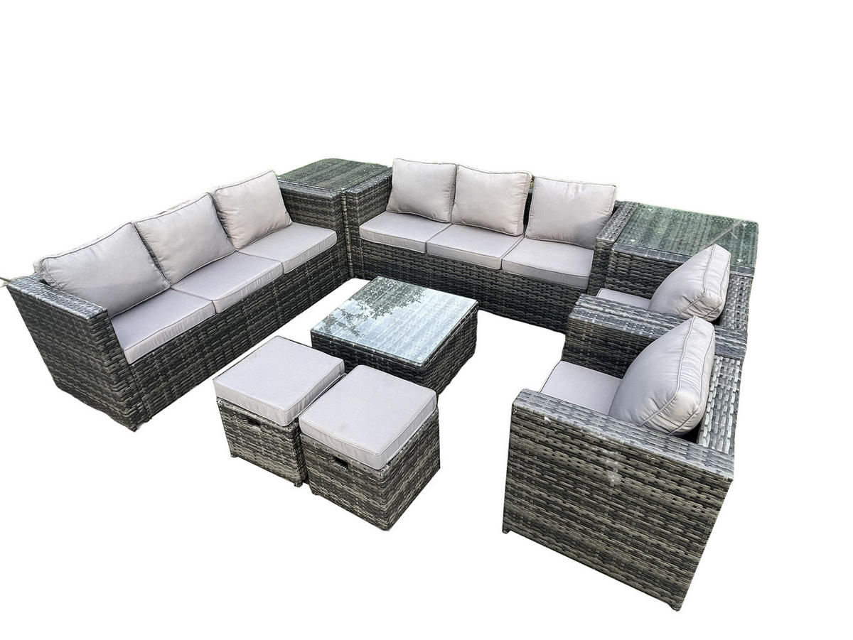 GARTENTISCHGRUPPE Polyrattan 10-Sitzer - Dunkelgrau, Metall - FimousFimous