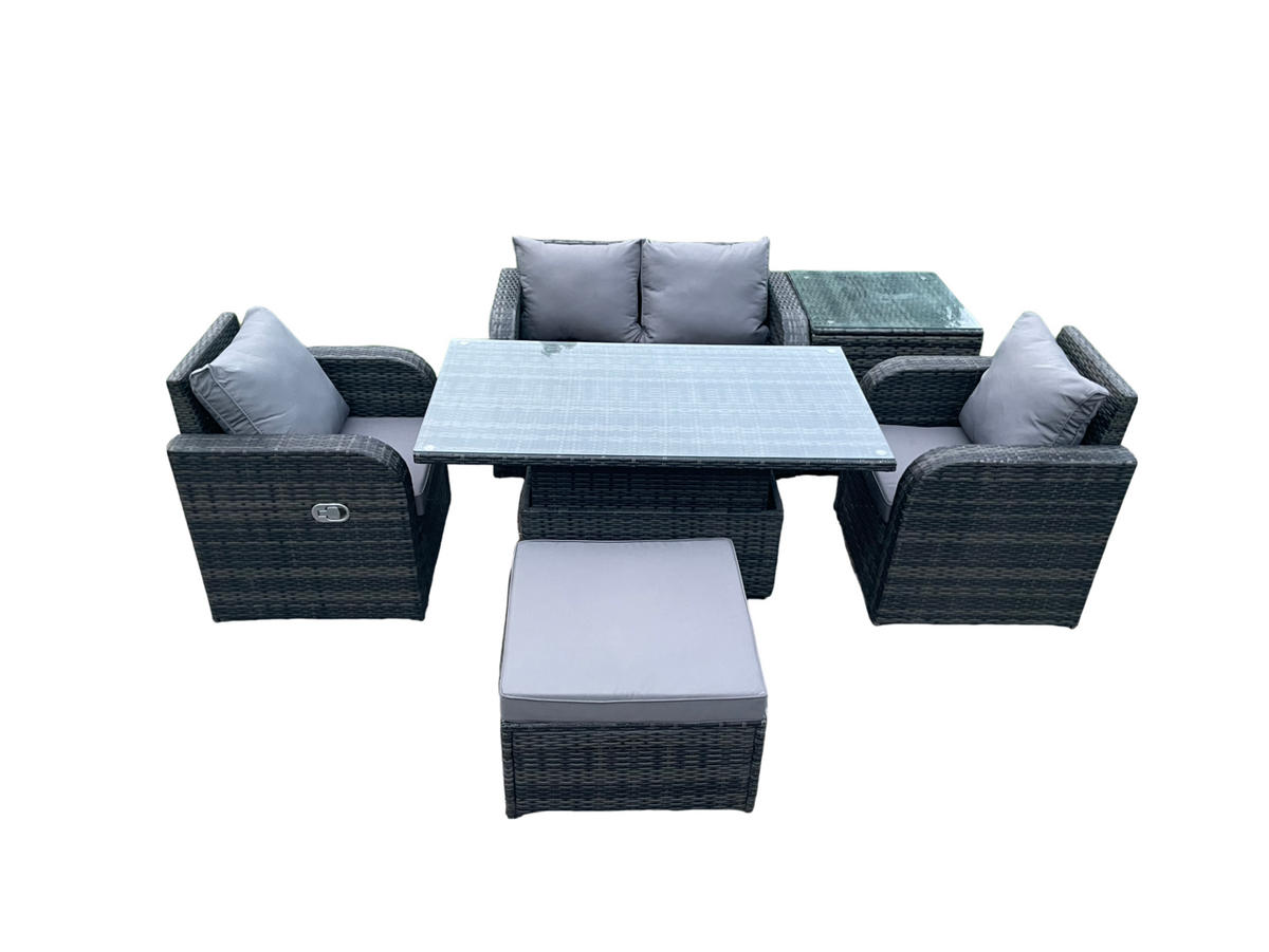 • Materialien: Polyrattan,Stoff,verzinkter Stahl,Schaum,Glas