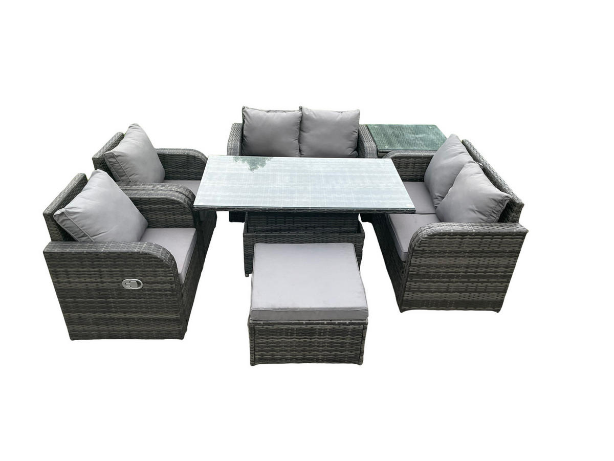 • Materialien: Polyrattan,Stoff,verzinkter Stahl,Schaum,Glas