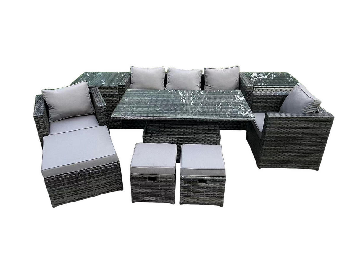 GARTENTISCHGRUPPE Polyrattan 8-Sitzer - Dunkelgrau/Grau, Glas/Kunststoff - FimousFimous