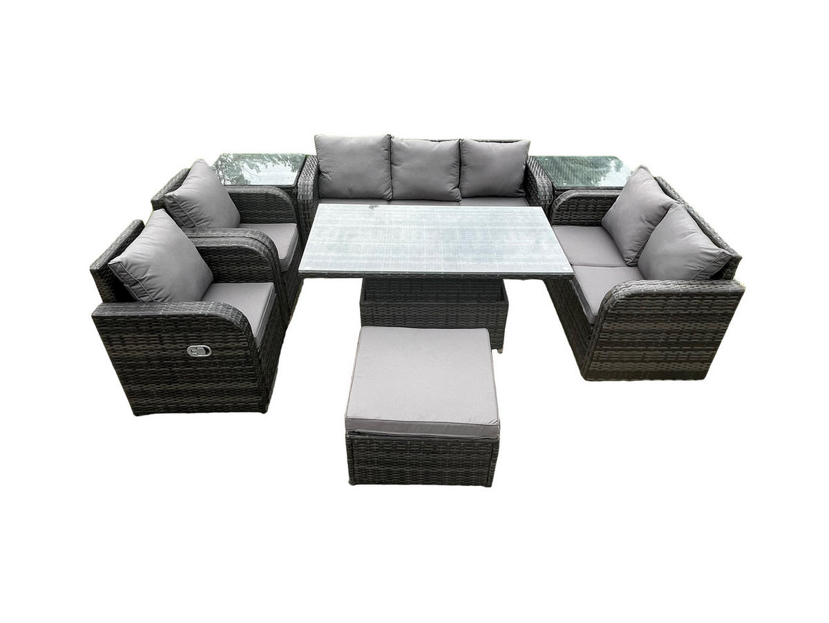 • Materialien: Polyrattan,Stoff,verzinkter Stahl,Schaum,Glas