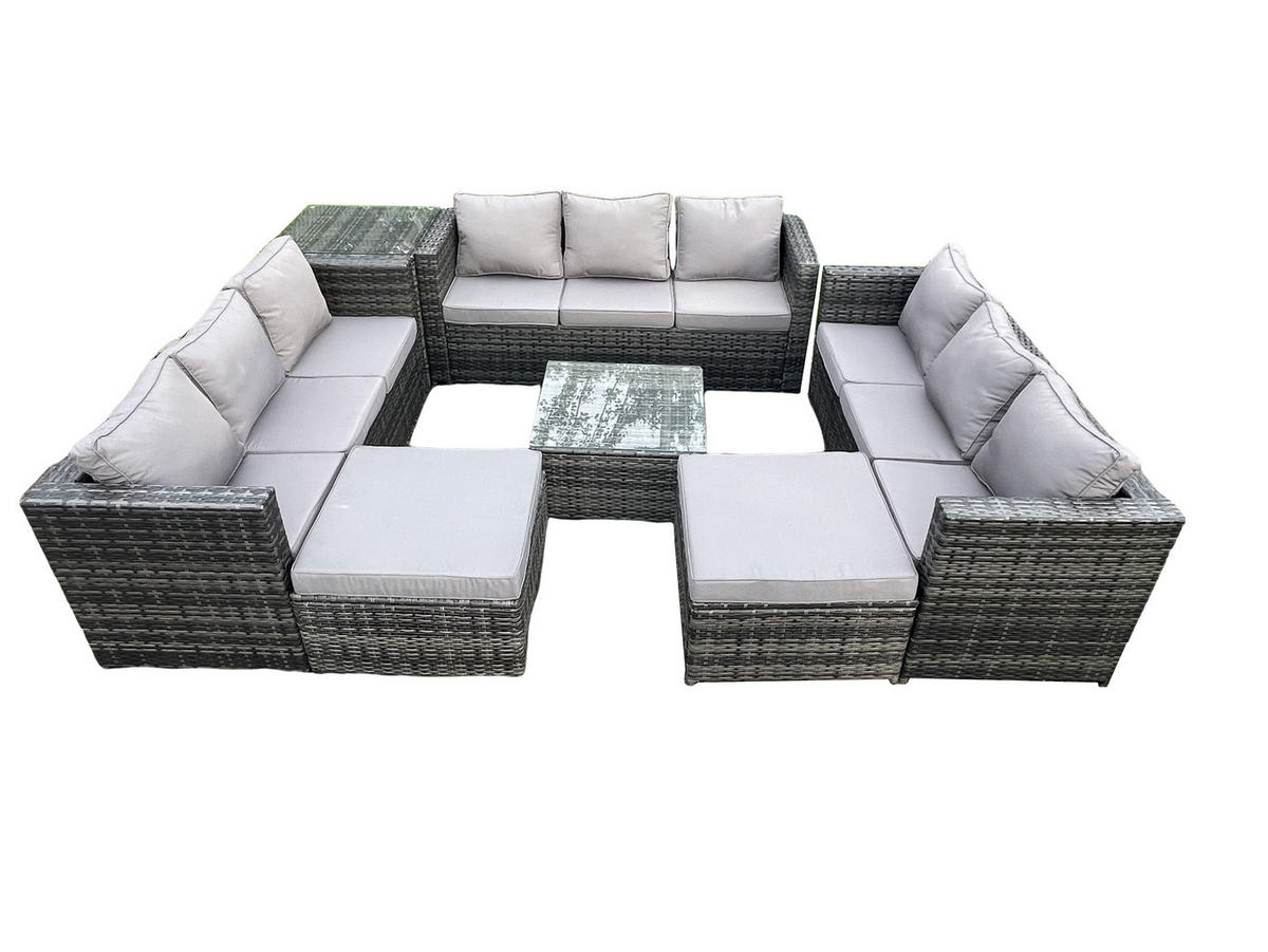 Fimous GARTENTISCHGRUPPE Polyrattan Dunkelgrau 11-Sitzer