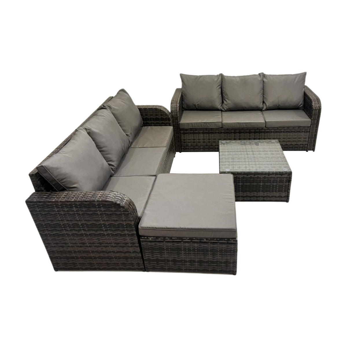- Materialzusammensetzung: Galvanisierter Stahl, Schaum, PE Rattan, Glas, Stoff