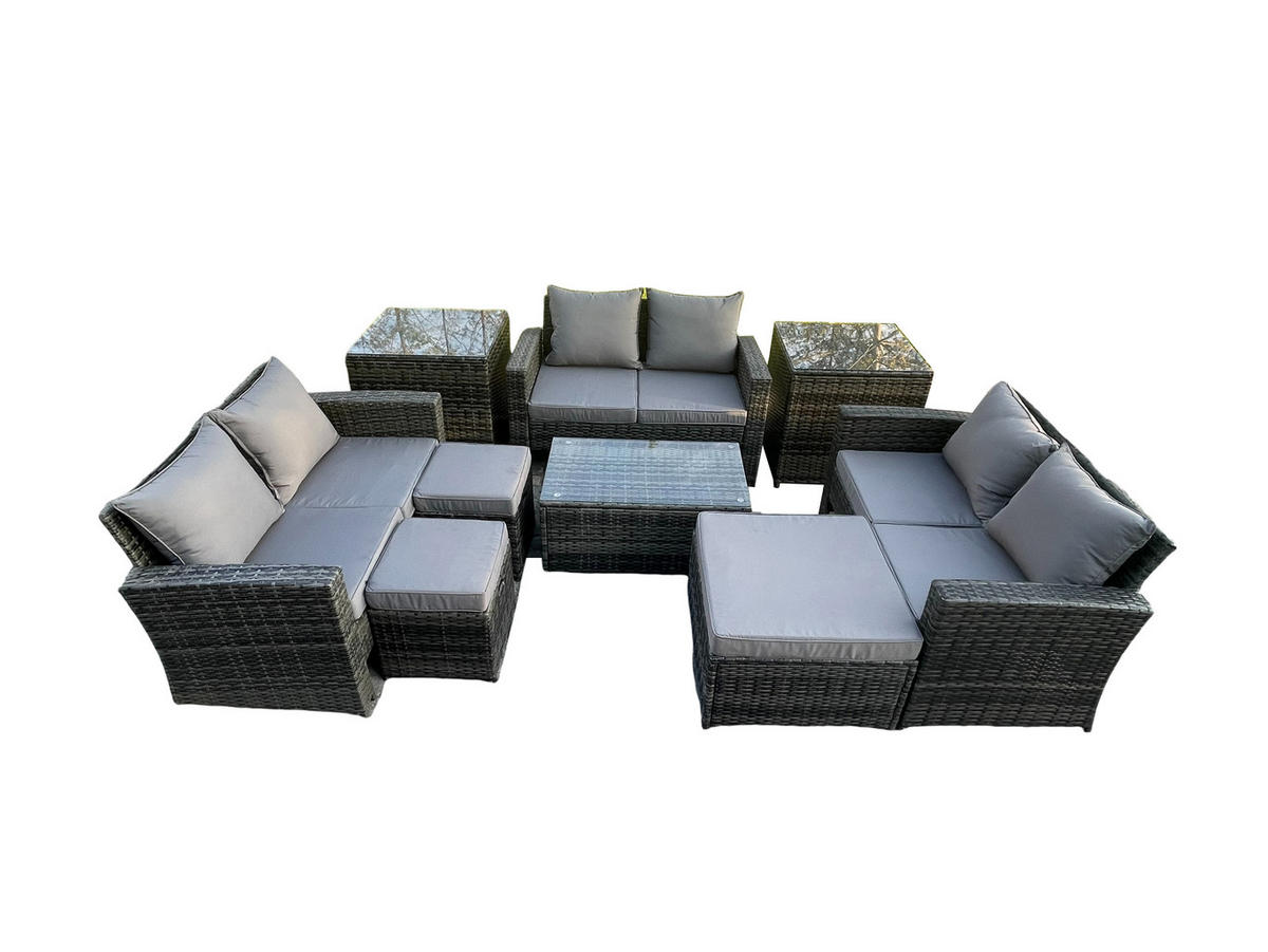 Fimous GARTENTISCHGRUPPE Polyrattan Dunkelgrau 9-Sitzer