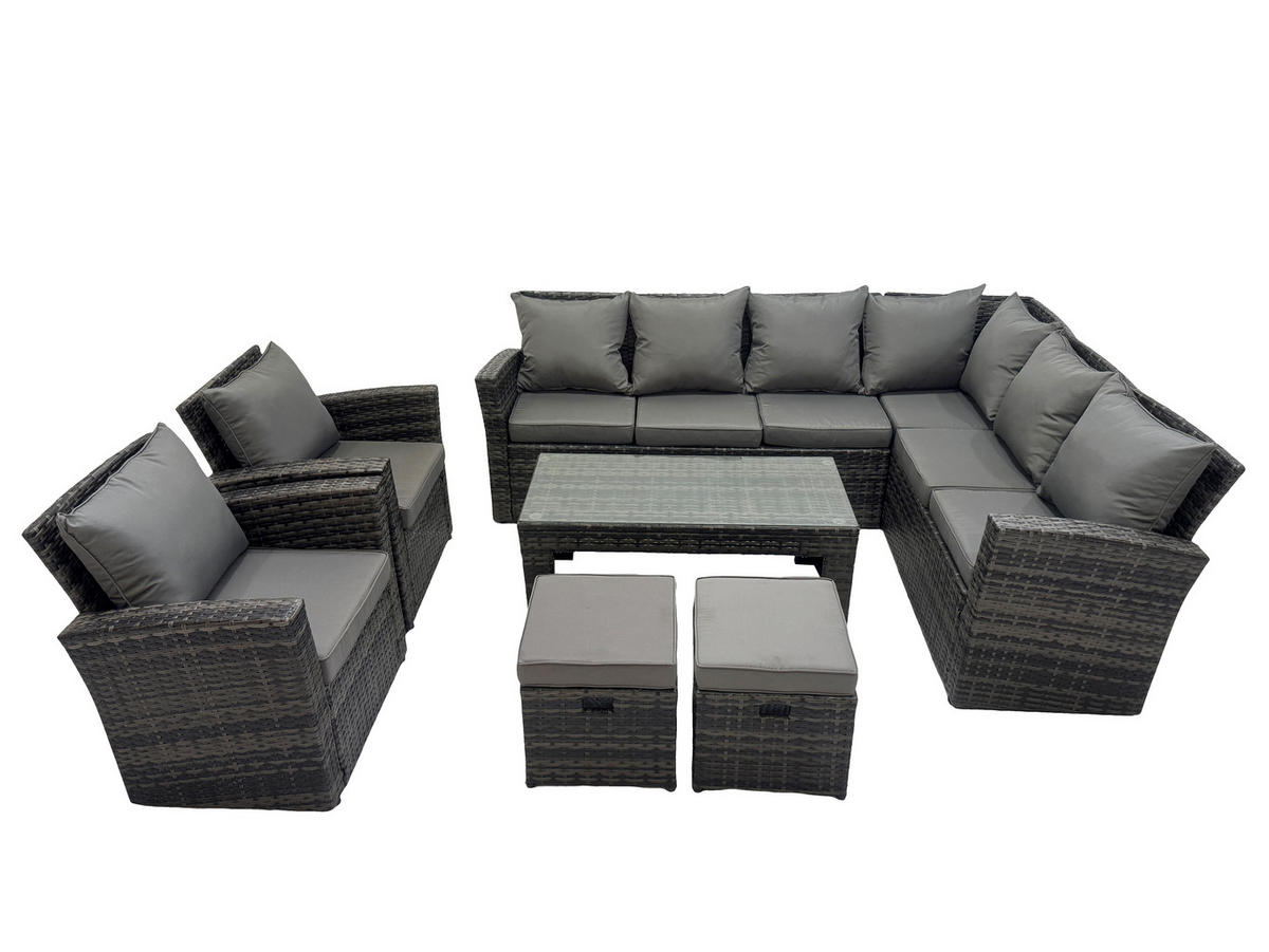 Fimous LOUNGEGARNITUR mit Couchtisch Sofa,2 Hocker Polyrattan Dunkelgrau 10-Sitzer