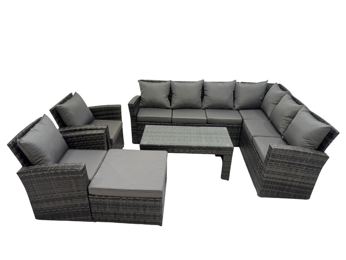 Fimous LOUNGEGARNITUR mit Couchtisch Sofa,Hocker Polyrattan Dunkelgrau 9-Sitzer
