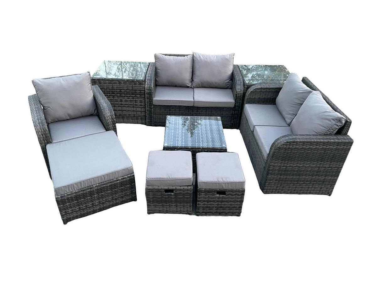 Fimous LOUNGEGARNITUR Polyrattan Dunkelgrau 8-Sitzer
