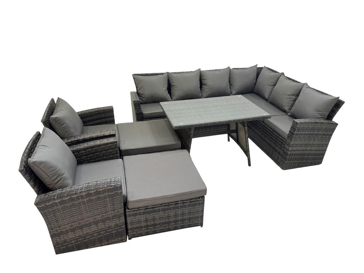Fimous LOUNGEMÖBEL-SETS mit Esstisch Sofa Polyrattan Dunkelgrau 10-Sitzer