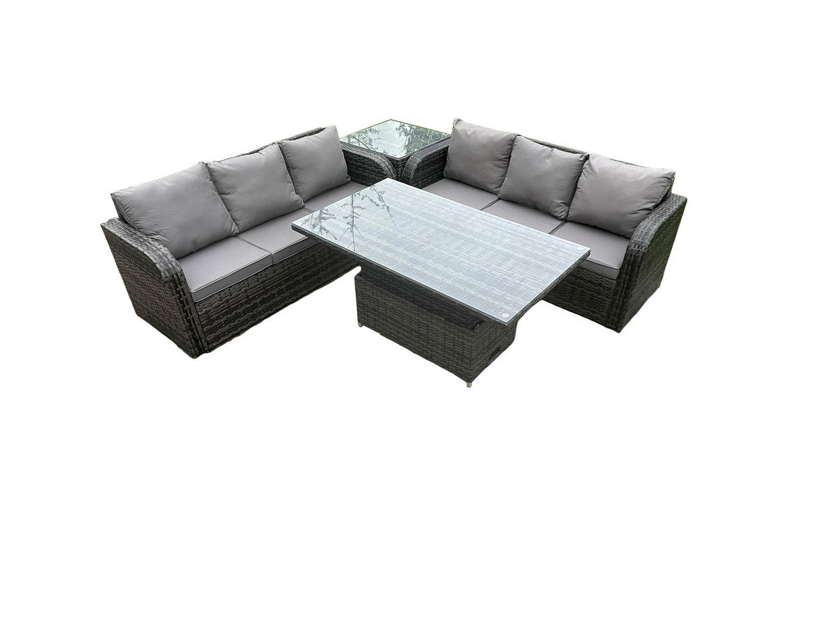 • Materialien: Polyrattan,Stoff,verzinkter Stahl,Schaum,Glas