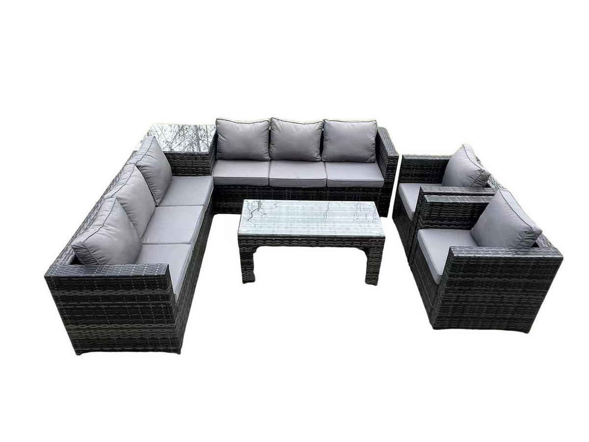 LOUNGESOFA Polyrattan 8-Sitzer - Dunkelgrau/Grau, Glas/Kunststoff - FimousFimous