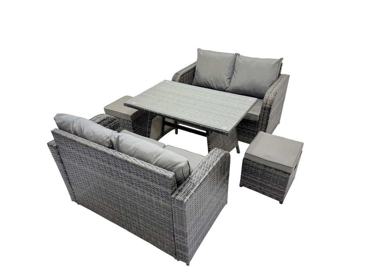 Fimous LOUNGESOFA SET mit 2 Hocker Polyrattan 6-Sitzer