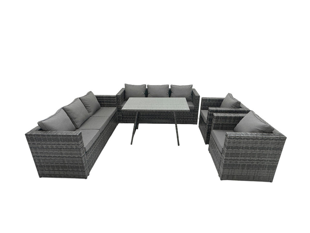 • Materialien:Polyrattan,Stoff,verzinkter Stahl,Schaum,Glas