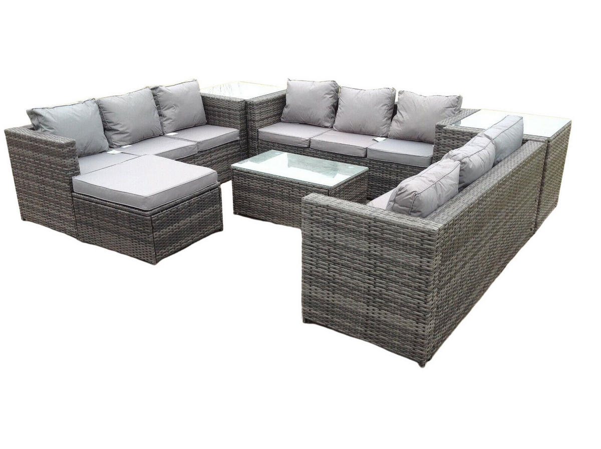 • Materialien: Polyrattan,Stoff,verzinkter Stahl,Schaum,Glas