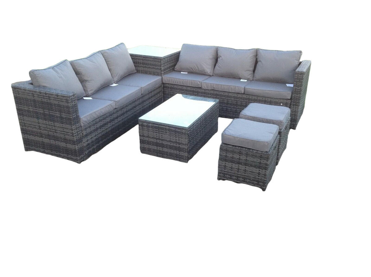 • Materialien: Polyrattan,Stoff,verzinkter Stahl,Schaum,Glas