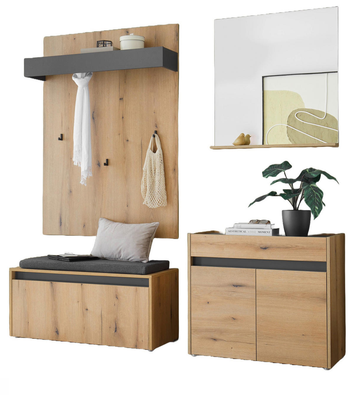 GARDEROBE Set 4-teilig in Evoke Eiche und grau Garderobenkombination 170 x 200 cm Center