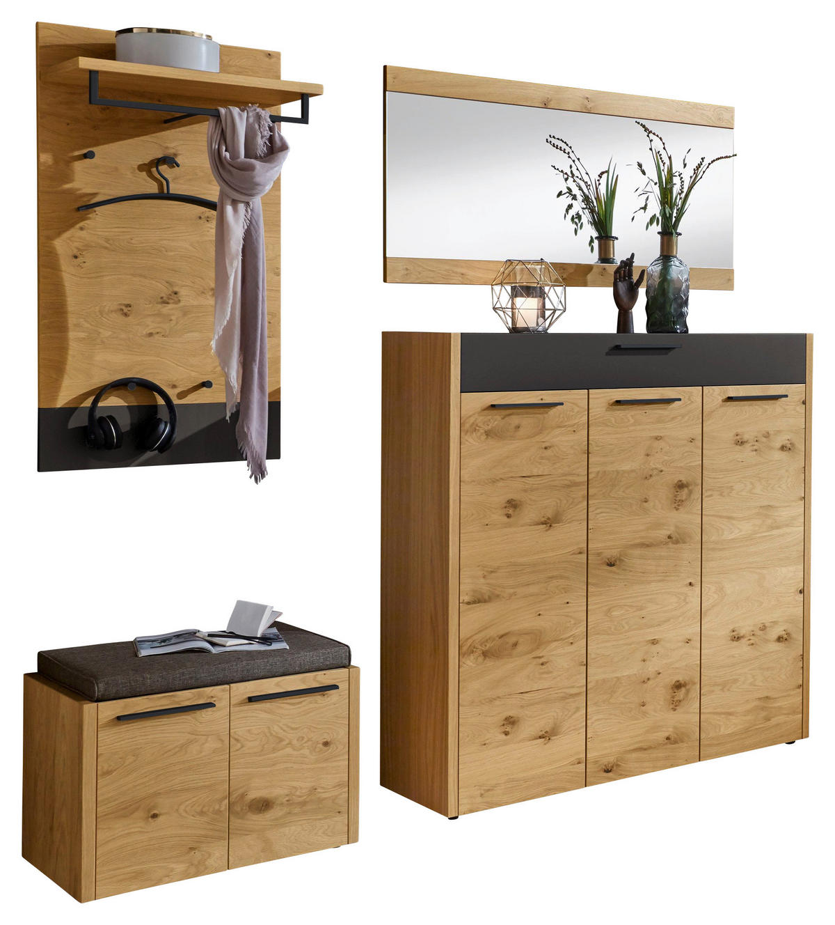 Garderobe (5-teilig) in Eichefarben und Schwarz für eine geschmackvolle Diele