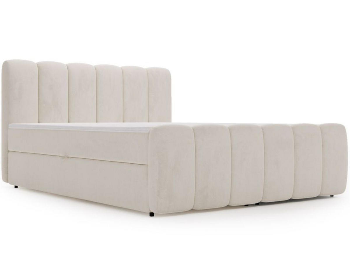 Cloud ist ein kontinentales Bett, das sich hervorragend für ein geräumiges, modernes Schlafzimmer eignet. Das weiche und sorgfältig gesteppte Kopfteil dient als praktisches Konstruktionselement und ermöglicht eine bequeme Unterstützung beim Lesen oder Fernsehen. Ein großer Vorteil dieses Modells sind die beiden komfortablen Matratzen. Die Hauptmatratze basiert auf einem Bonellfederkernsystem und T30-Schaumstoff, während der Topper aus einem hochelastischen Schaumstoff mit einer Dicke von 5 cm besteht.