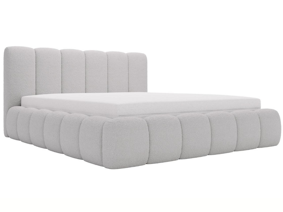 ANTHOLOGY bezogen, der zu den Bouclé-Gewirken gehört. Seine ausgeprägte Struktur mit Schlingen und Knoten schafft einen einzigartigen visuellen Effekt und bietet einen besonders angenehmen Griff. Der Stoff ist widerstandsfähig gegen Pilling und Abrieb, was eine lange Lebensdauer des Bettes garantiert.