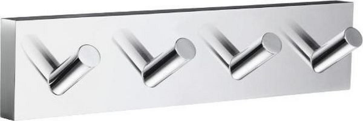 Diese chromfarbene Hakenleiste begeistert durch ihre schlichte Optik! Sie hat die Maße von ca. 17,8 x 3,9 x 4,5 cm (B x H x T) und besteht aus rostfreiem verchromtem Messing. An 4 Haken hängen Sie bequem Ihre Kleidungsstücke auf. Die hochwertige Hakenleiste "House" ist für Ihren Flur unverzichtbar!