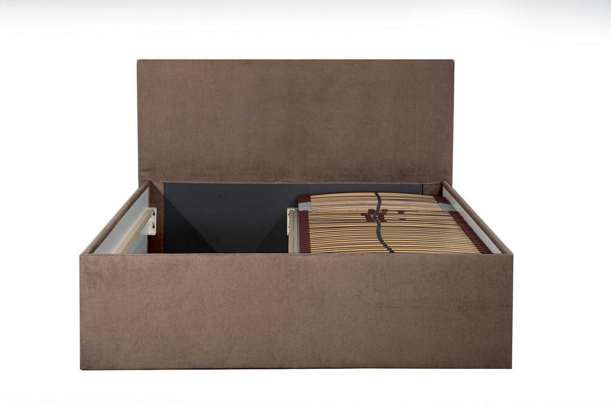 großzügiger Stauraum, ideal zur Aufbewahrung von Bettwäsche, Decken oder Kissen. Der Stauraum ist fest integriert und verfügt über keine Klappfunktion. Der Innenbereich ist
