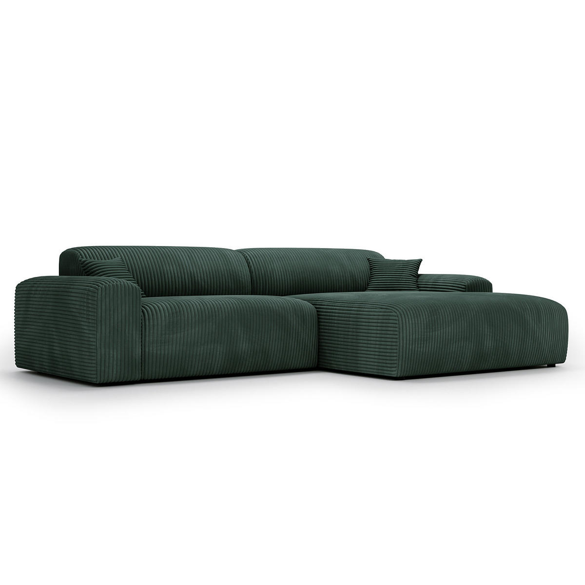ECKSOFA mit Longchair - Cord - Schwarz/Grün, Kunststoff/Textil (284/178cm) - home24
