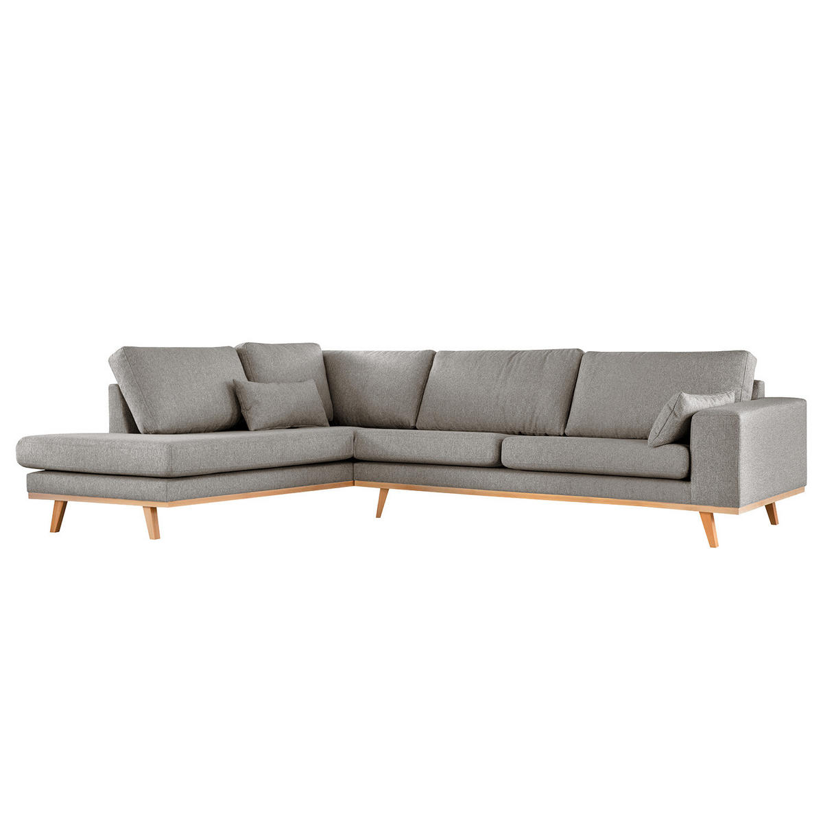 ECKSOFA mit Ottomane - Graubraun/Buchefarben, Holz/Buchenholz (287/219cm) - home24home24