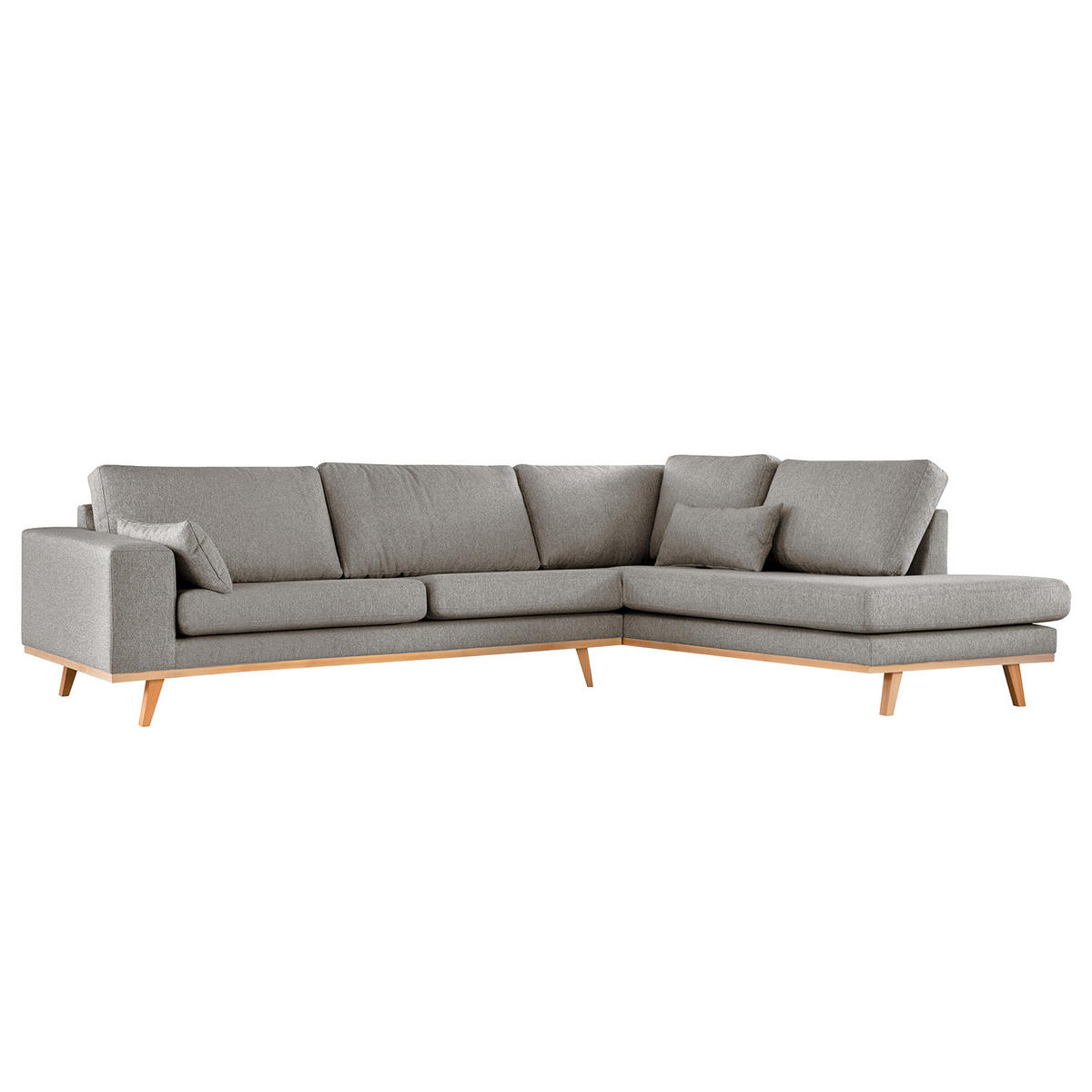 ECKSOFA mit Ottomane - Graubraun/Buchefarben, Holz/Buchenholz (287/219cm) - home24home24