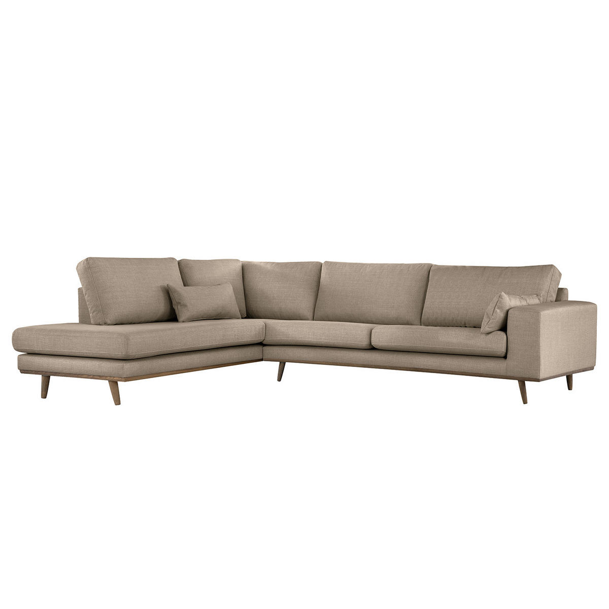 ECKSOFA mit Ottomane - Taupe/Eichefarben, Eichenholz/Holz (287/219cm) - home24