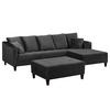Dieses Ecksofa mit flexibler Ottomane im Modern Style ist mit edlem Samt bezogen. Die samtige Oberfläche und die klare Linienführung schaffen eine anspruchsvolle und bequeme Sitzlandschaft, die sich leicht anpassen lässt.